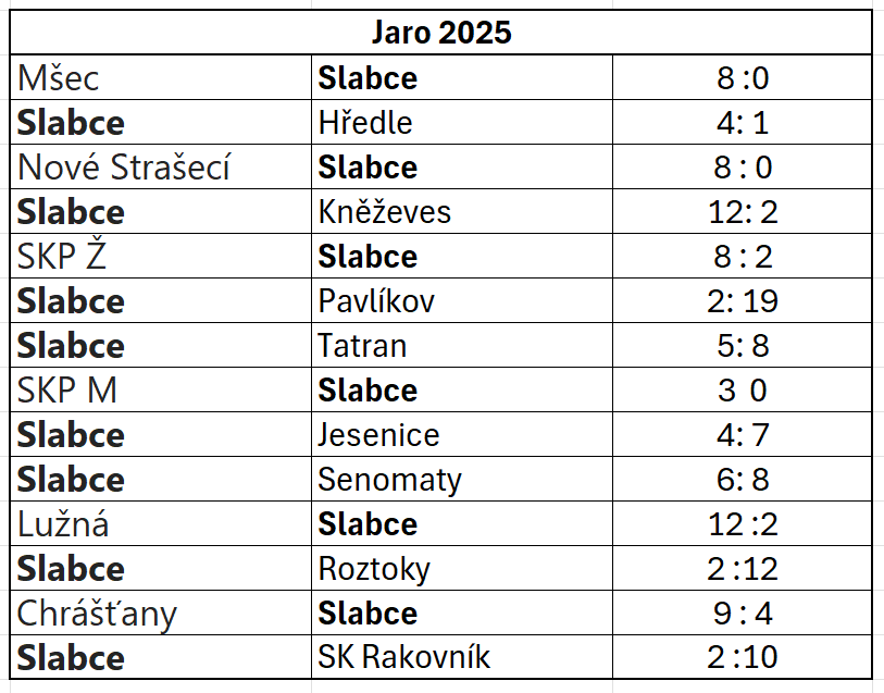 Výsledky sezóny 2024/2025 - okresní přebor starších